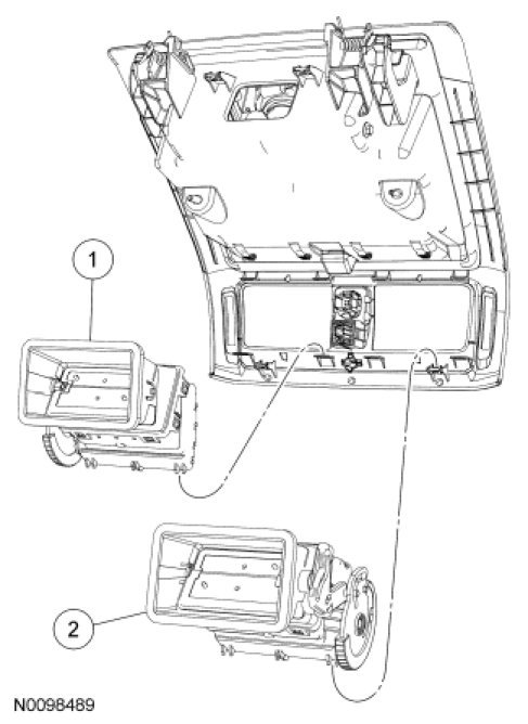 1. Remove the instrument panel upper storage compartment. For additional information, refer to Instrument Panel and Console Storage Compartment - Upper.