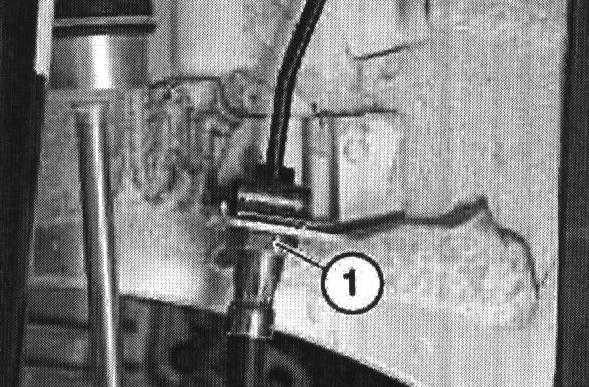 Brace brake hose on hexagon head (1) to ensure hose cannot rotate in retaining bracket.