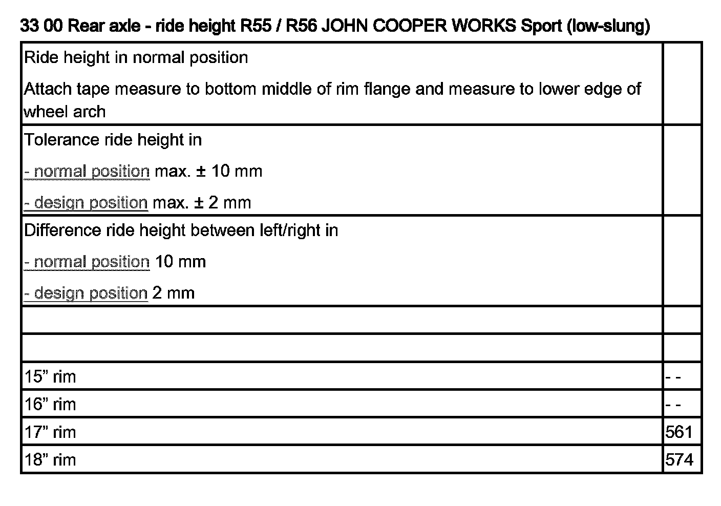 Ride Height R55, R56 / JOHN COOPER WORKS, Sport, (Low-Slung)