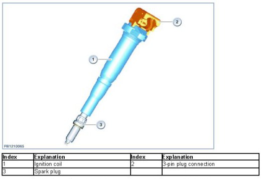 Each spark plug receives its high-tension voltage from its own ignition coil (pencil coil) and a separate individual ignition output stage within the engine control unit.