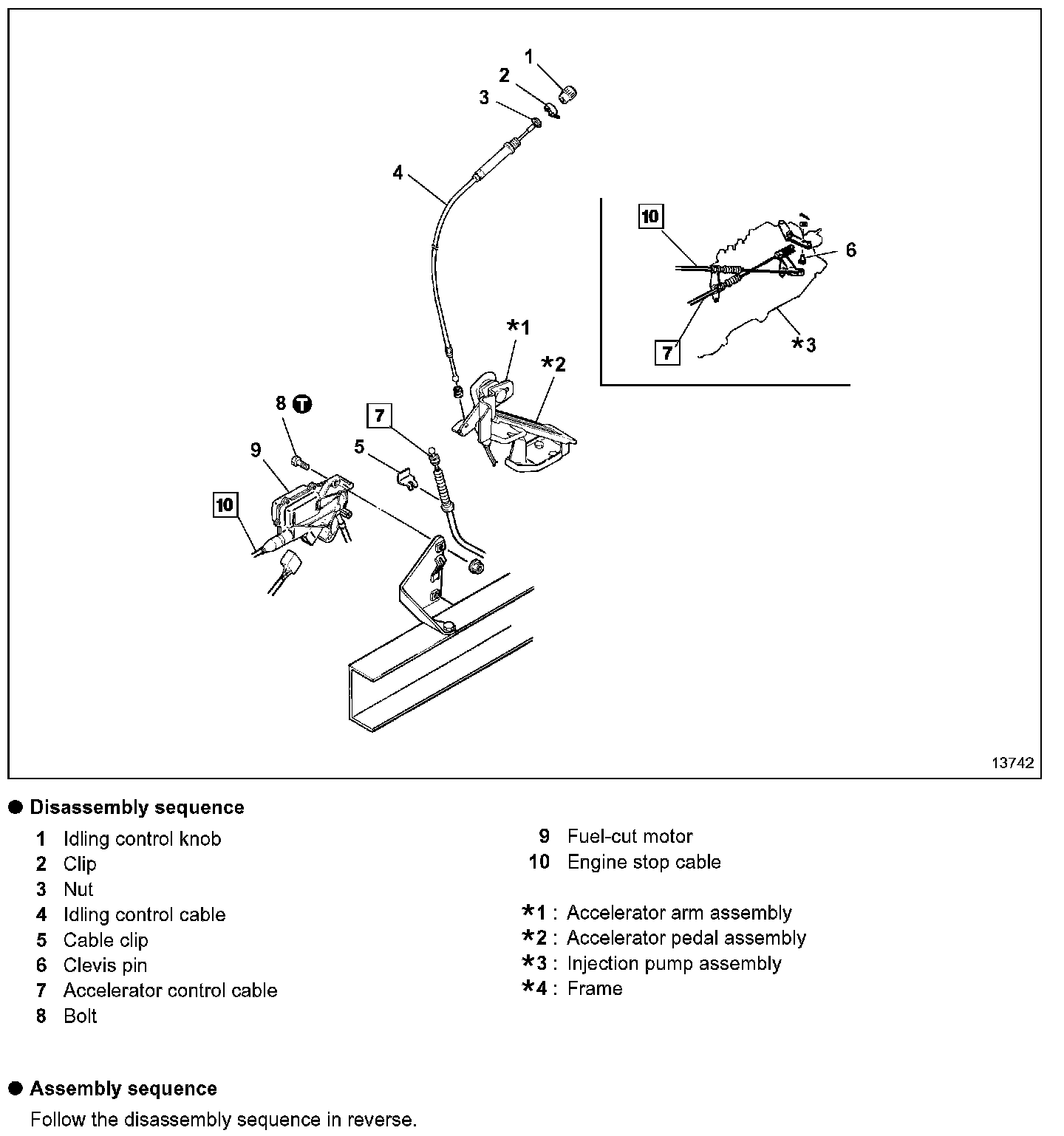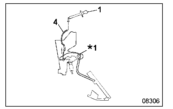 - Mount accelerator control cable 7 to accelerator arm assembly *1.