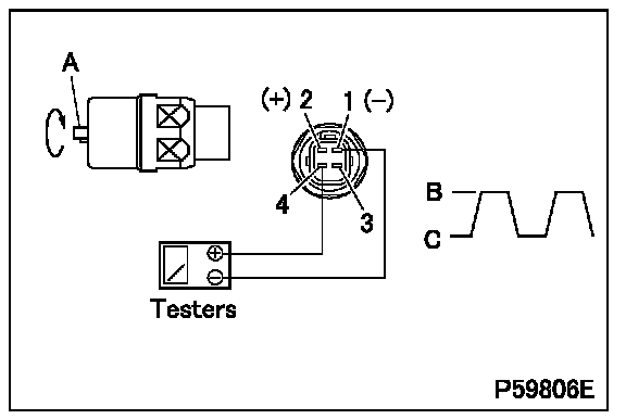 - Measure the maximum voltage (high pulse voltage B) and minimum voltage (low pulse voltage C) occurring at each specified pair of terminals.