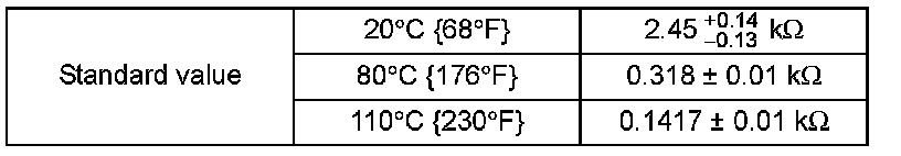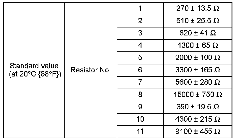 Standard value: (at 20 °C {68 °F}) 860 ± 86 ohms