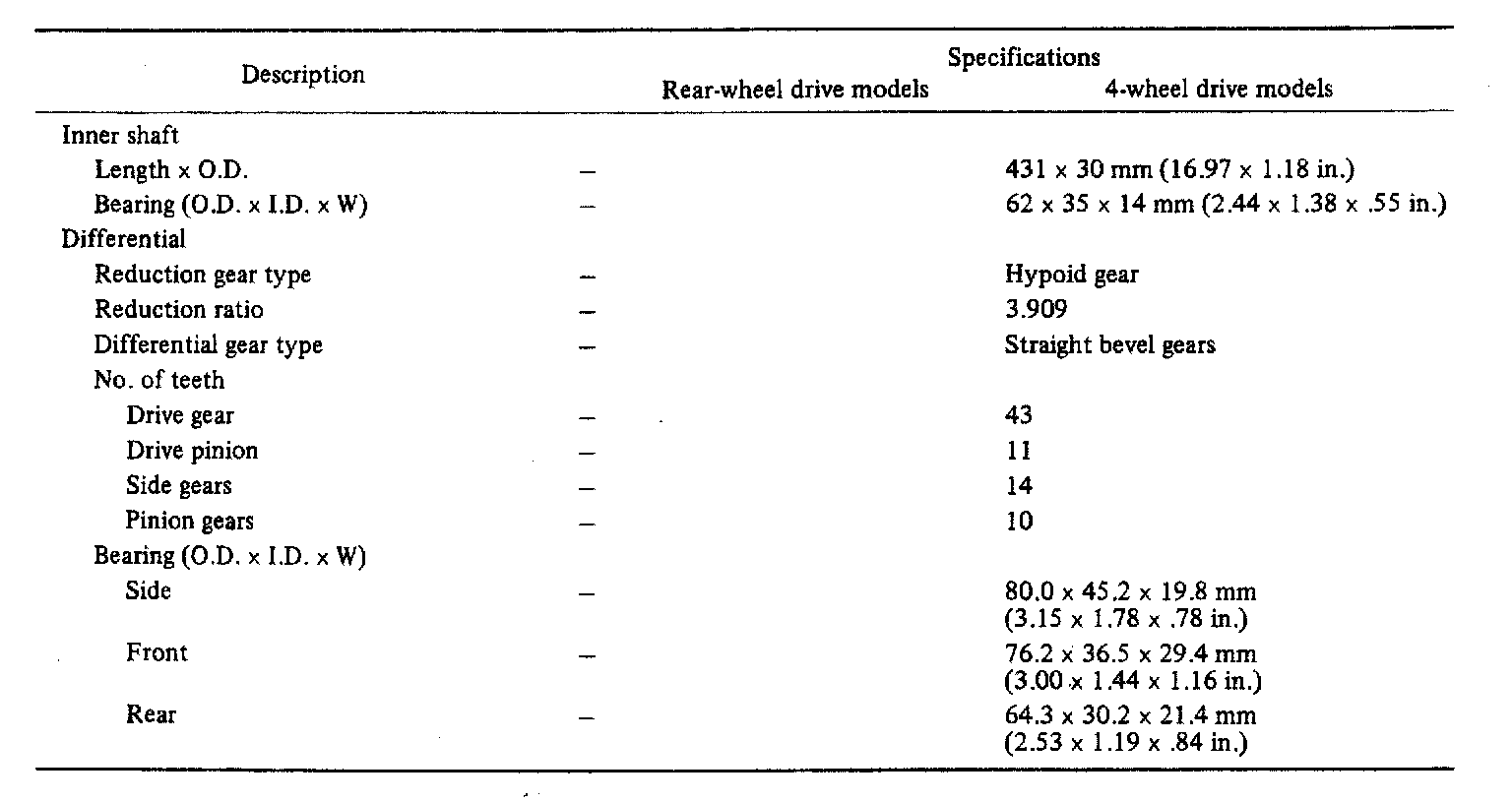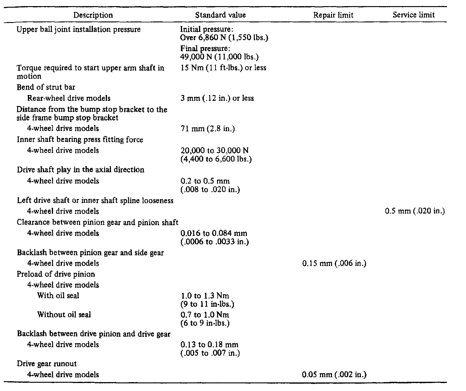 2WD & 4WD Front Differential Standard Value & Limits:
