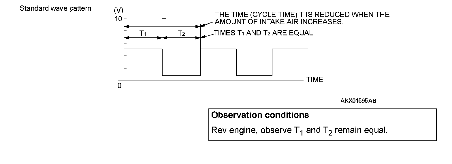 Check that cycle time T becomes shorter and the frequency increases when the engine speed is increased.