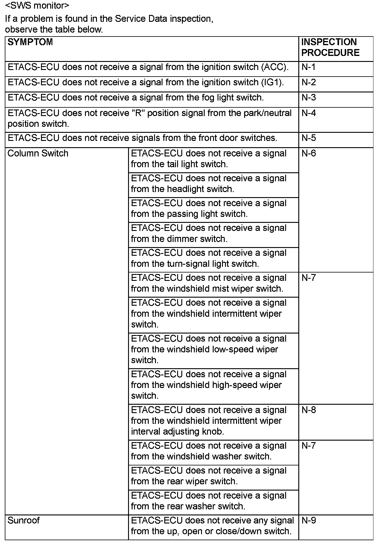 PULSE CHECK1. The input signals (signals other than SWS communication line signals), which are compatible with the SWS monitor by using the scan tool or voltmeter, can be confirmed by the Pulse Check. (Refer to How to Use Troubleshooting/Inspection Service Points.)