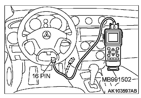 1. Connect scan tool MB991502 to the data link connector.