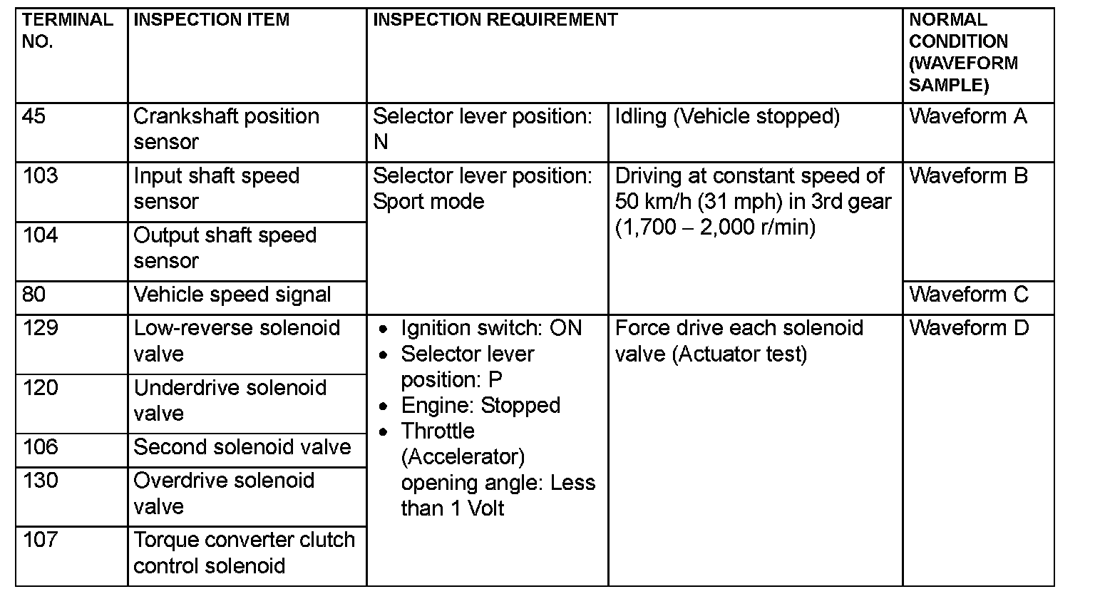 INSPECTION PROCEDURE USING AN OSCILLOSCOPE