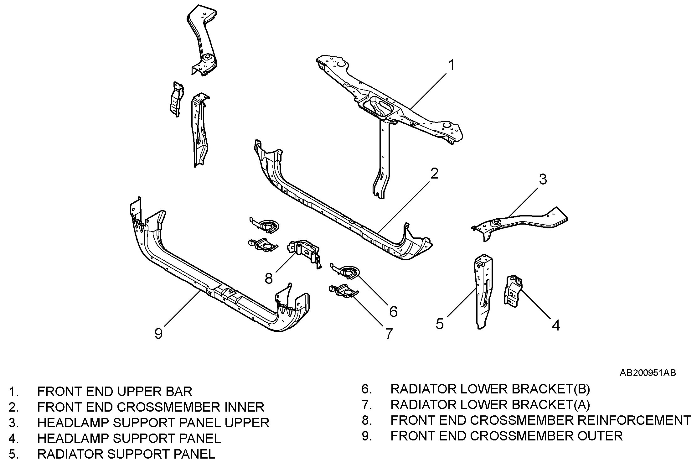 The headlamp support has divided structure to improve workability when replacing the panel. And the bolting type front end upper bar is used to improve maintainability.
