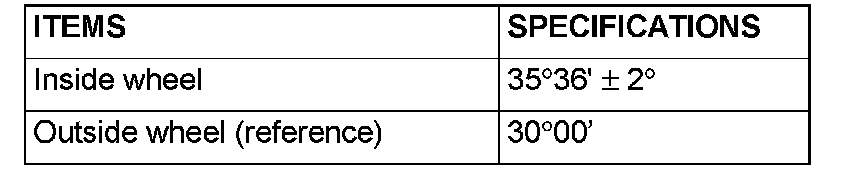 1. Place the front wheel on a turning radius gauge and measure the steering angle.