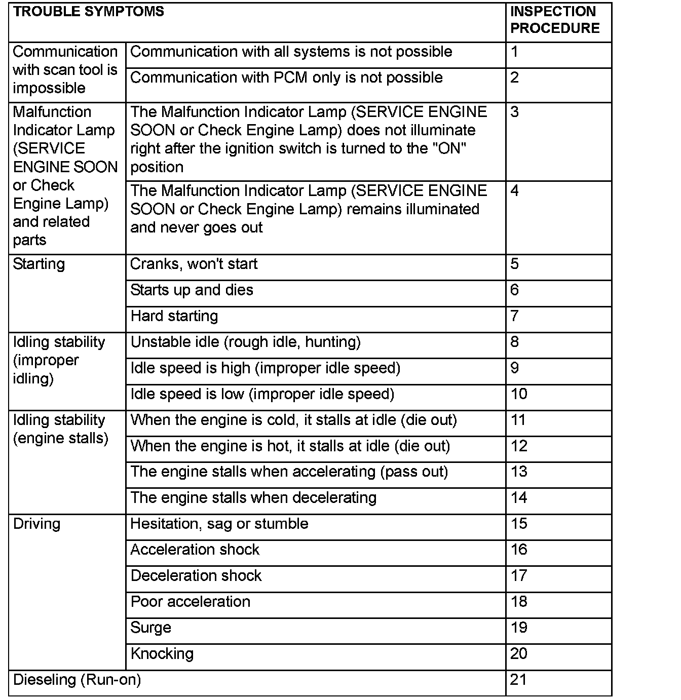 Problem Symptoms Table (For Your Information) Part 2: