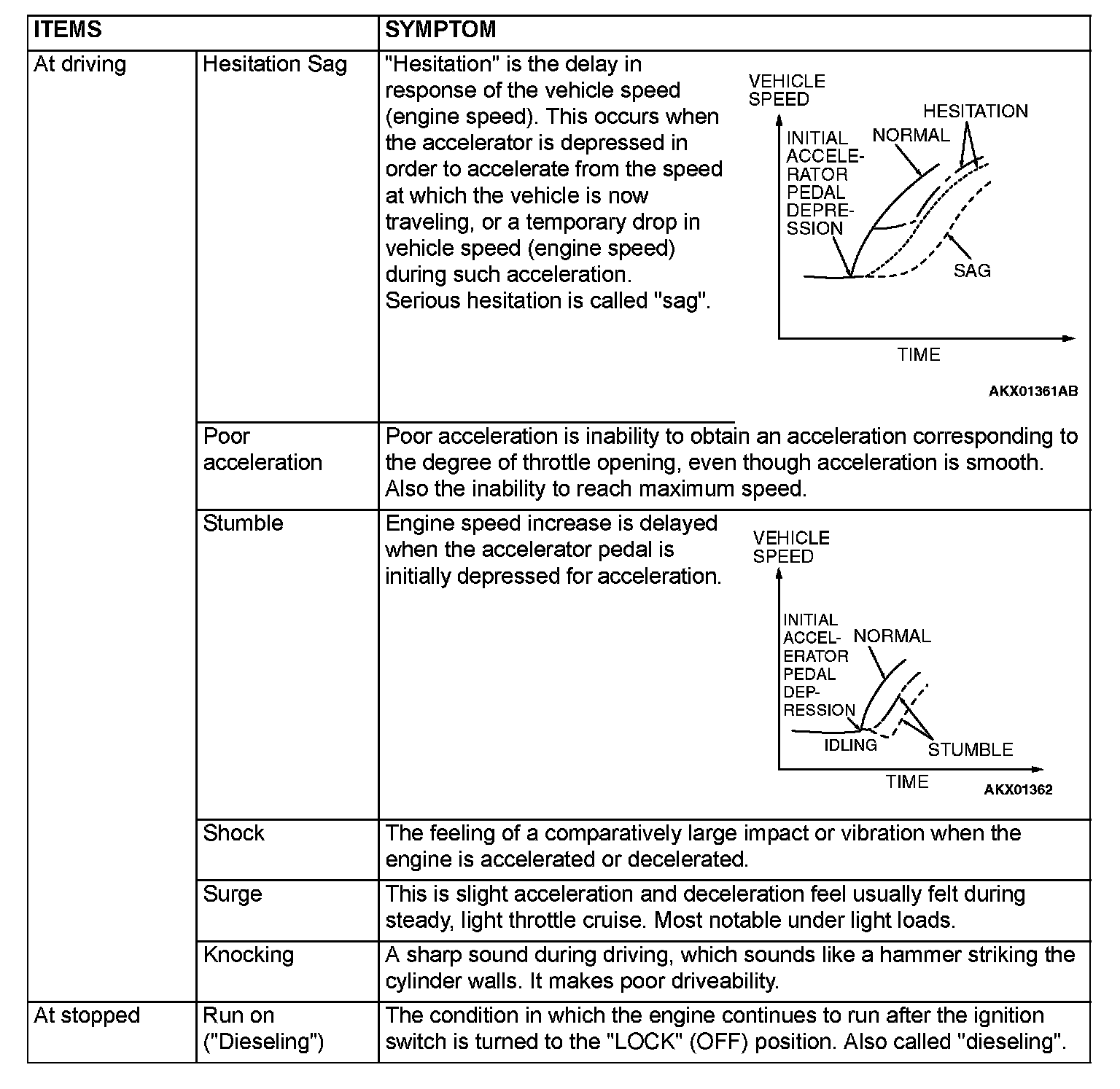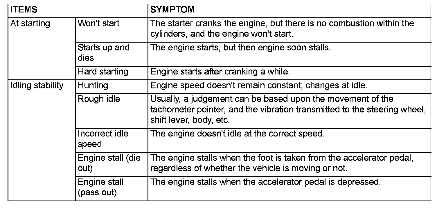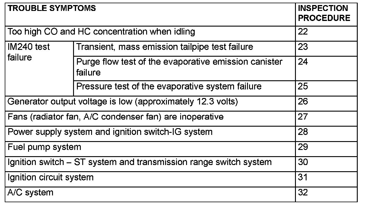 PROBLEM SYMPTOMS TABLE (FOR YOUR INFORMATION)