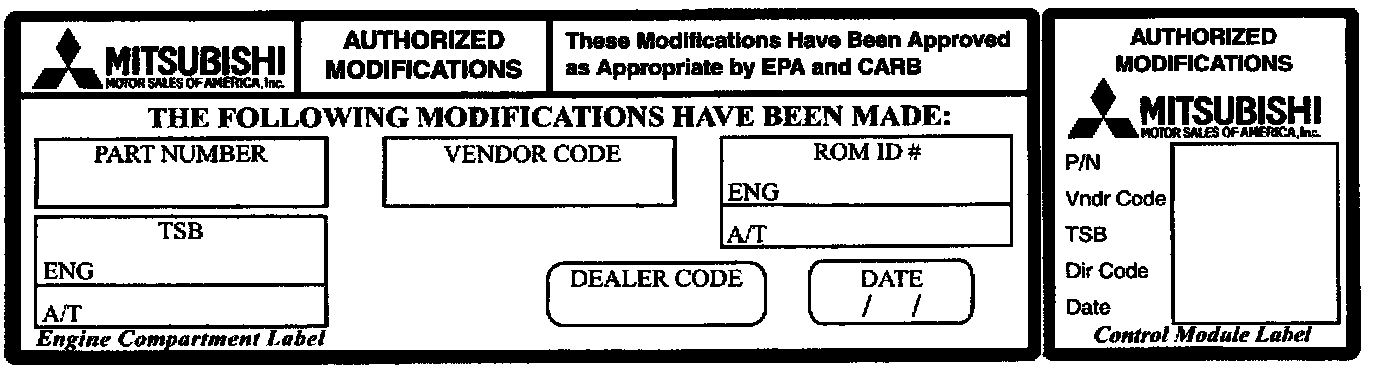 - "Engine Compartment/Control Module" Labels p/n MSSF-024G-00