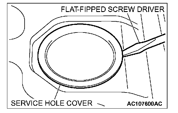 2. Pry off the service hole cover using a flat-tipped screwdriver, etc.