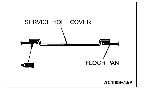 8. Apply the specified sealant to the contact surfaces of the service hole cover and the floor pan, and install the service hole cover.