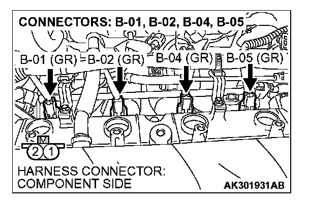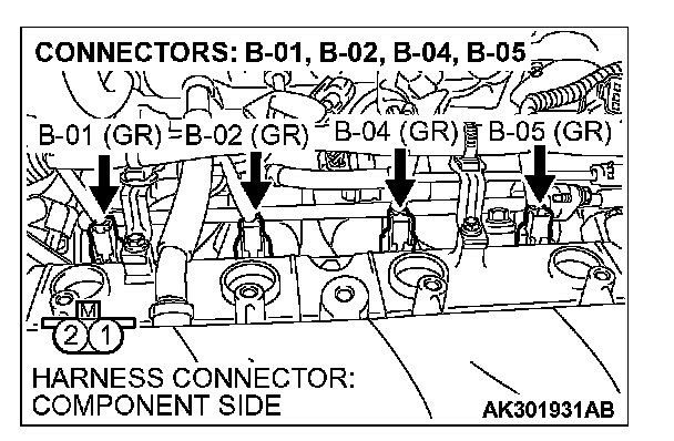 1. Disconnect the injector connector B-01, B-02, B-04, B-05.