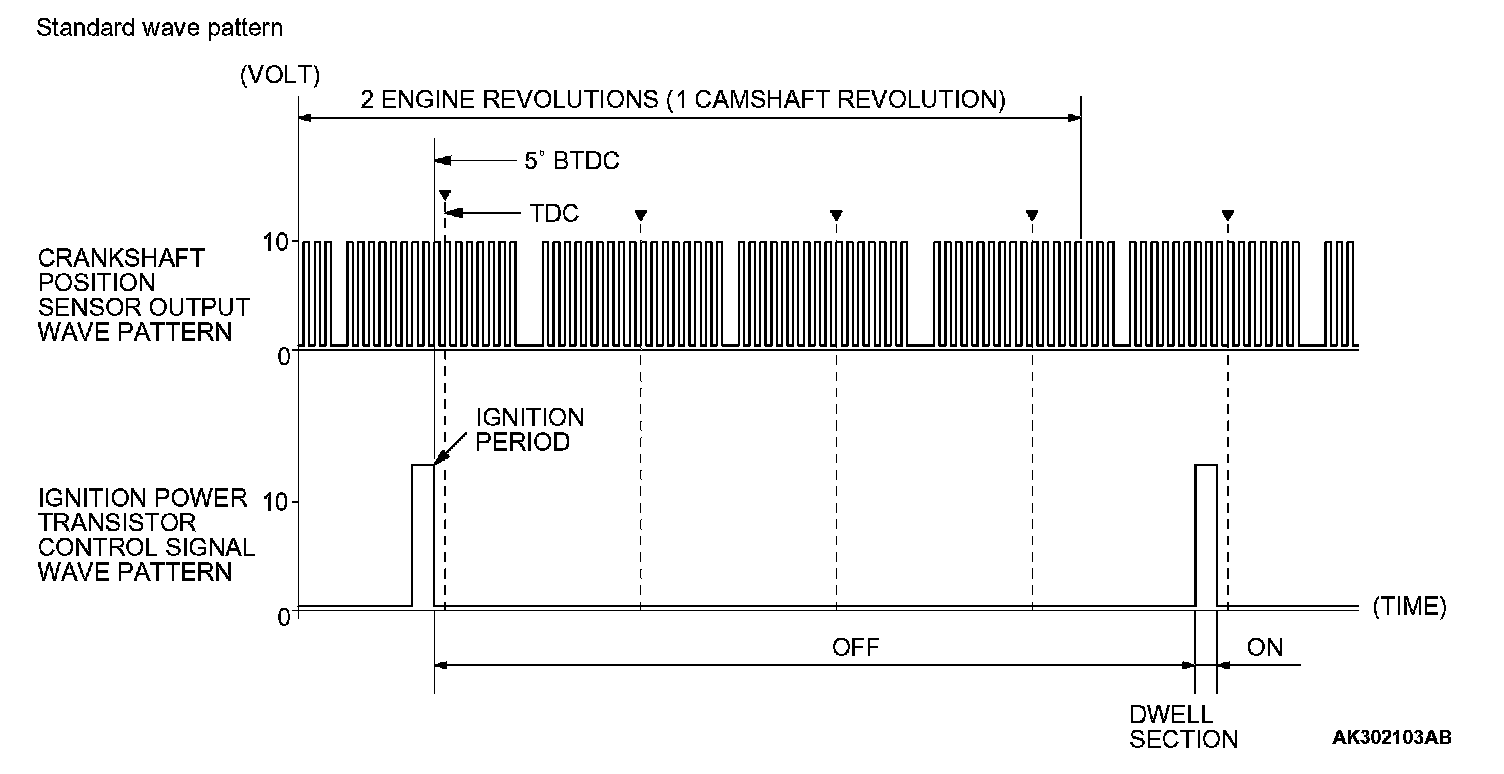 Point: The power transistor control signal (ignition timing) is advanced when the engine speed is increased.