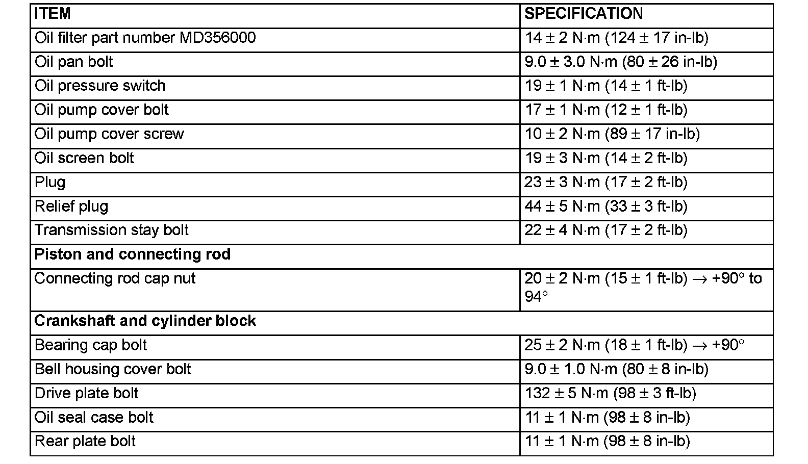 Torque Specifications