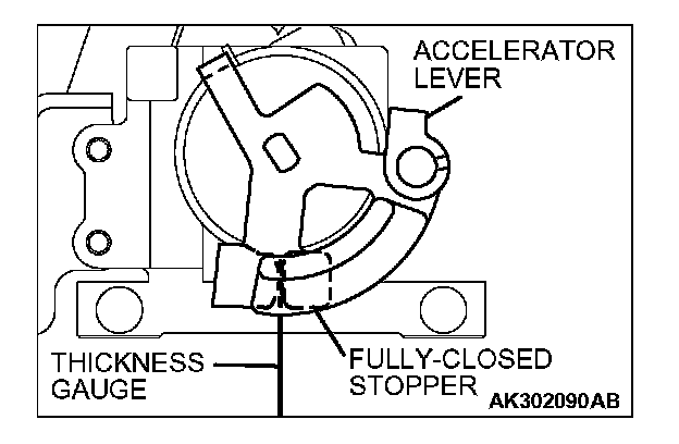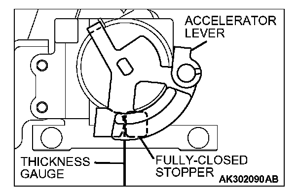 4. Insert a thickness gauge with a thickness of 0.60 mm (0.024 in.) in between the accelerator lever and the fully closed stopper.
