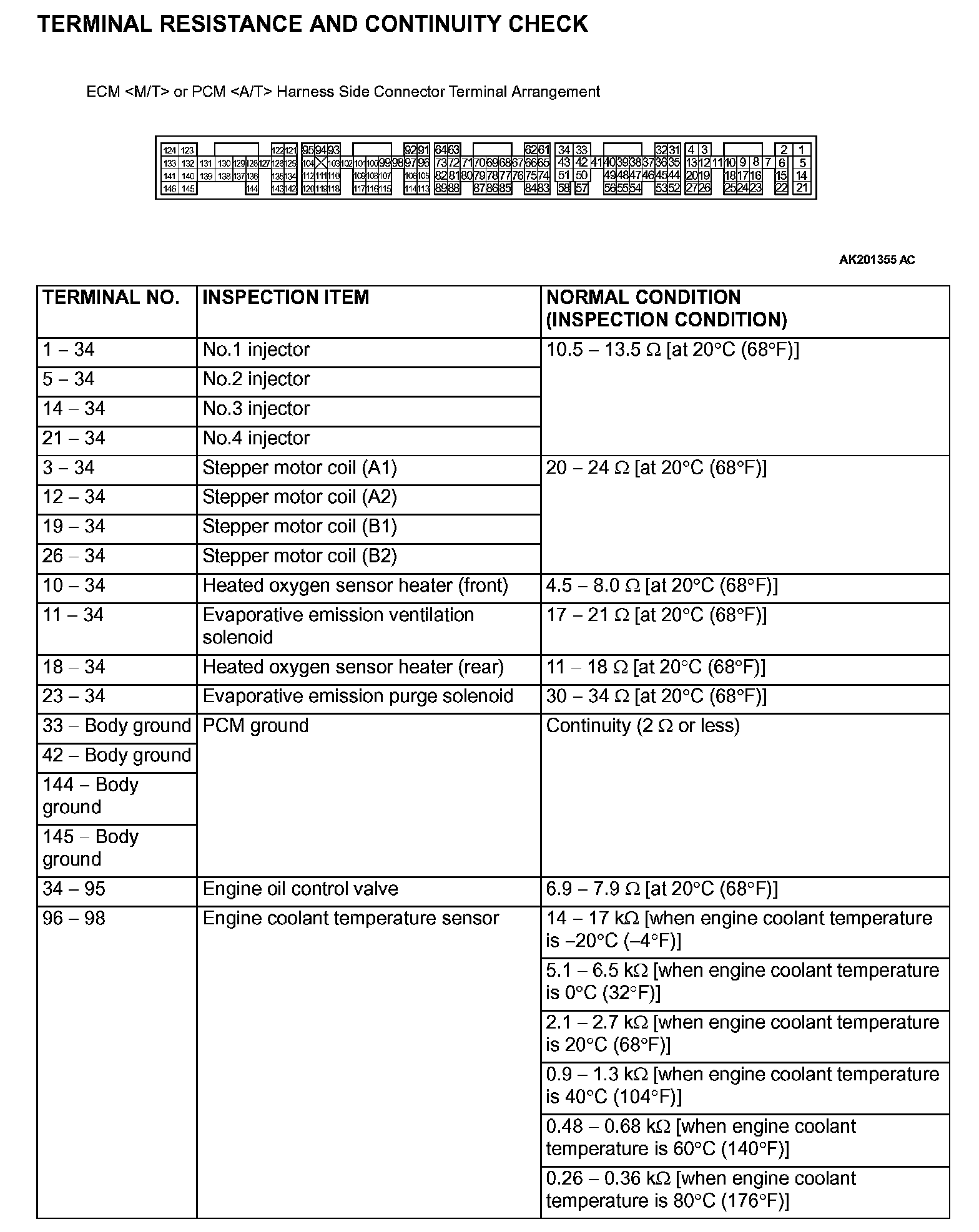 ECM <M/T> Or PCM <A/T> Harness Side Connector Terminal Arrangement Part 2: