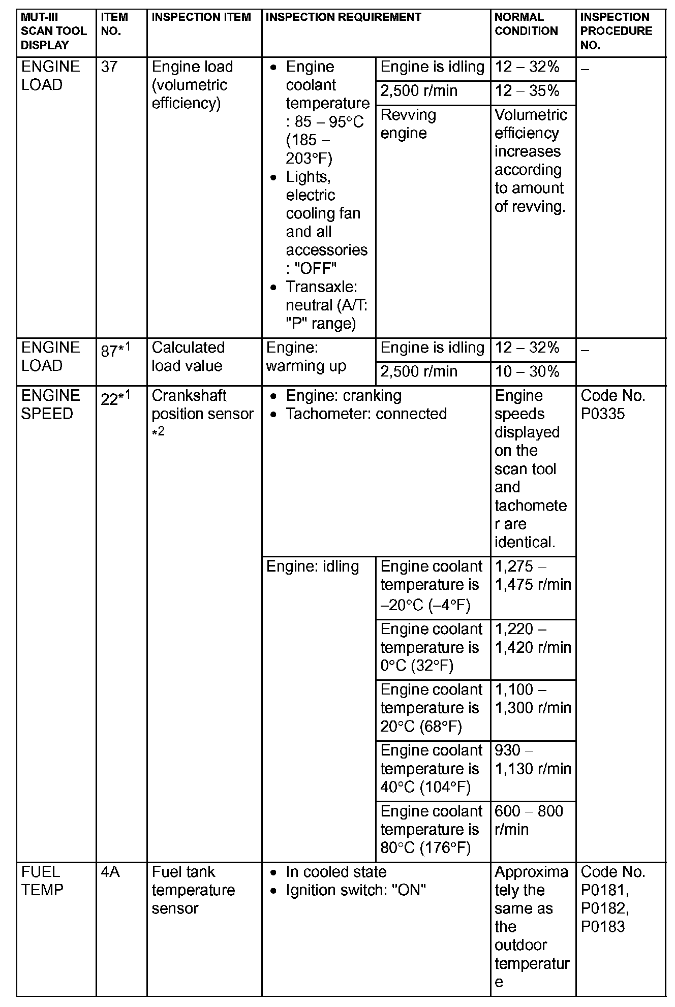NOTE: *2: The injector drive time represents the time when the cranking speed is at 250 r/min or below when the power supply voltage is 11 volts.
