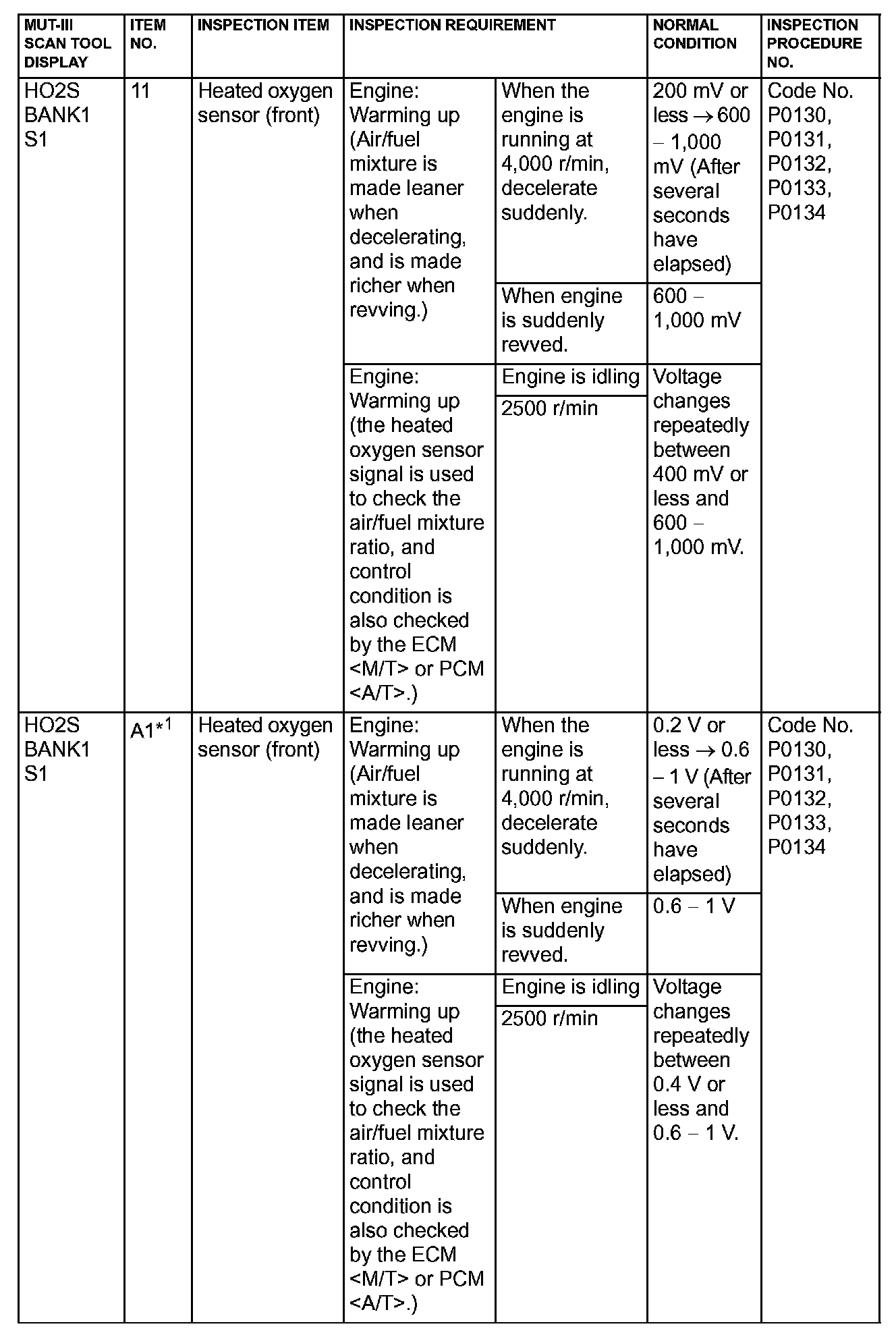 NOTE: Sensor 1 indicates the sensor mounted at a position closest to the engine, and sensor 2 indicates the sensor mounted at the position second close to the engine.