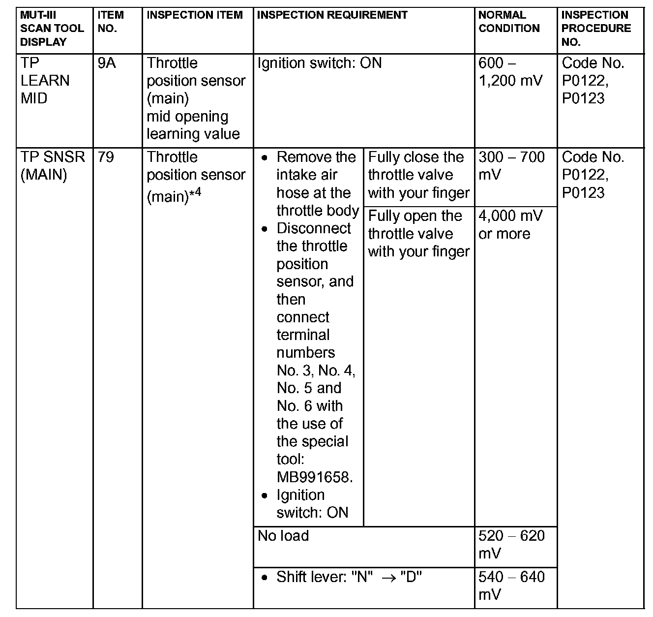 NOTE: *4: After the inspection has been completed, connect the throttle actuator control motor connector, and then use the scan tool MB991958 (MUT-III sub assembly) to delete the diagnosis code that was recorded during the inspection.