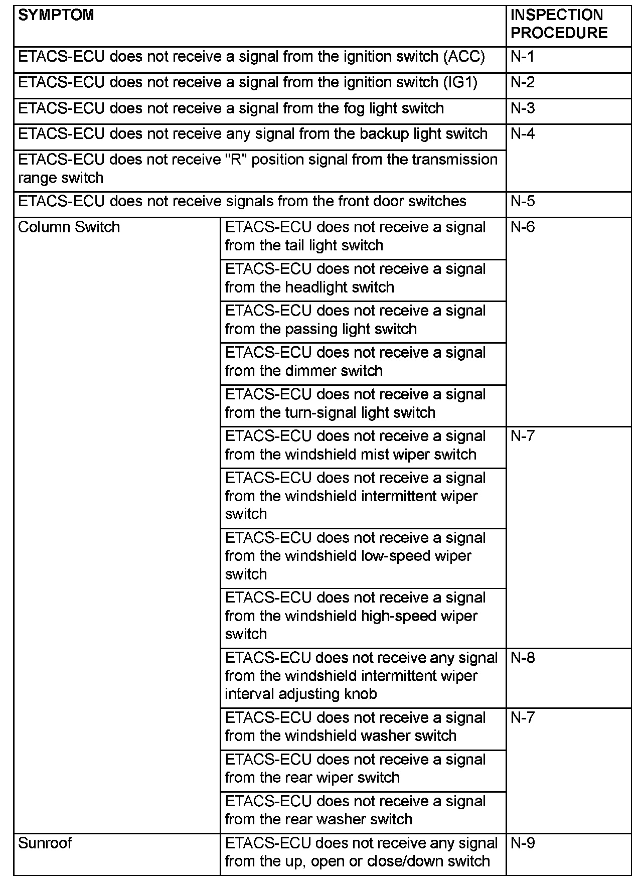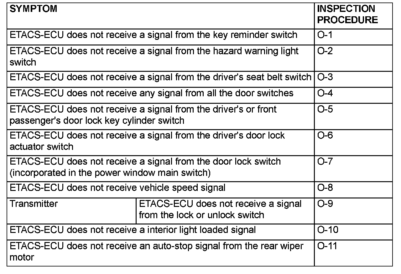 If a problem is found in the Service Data inspection, observe the table.