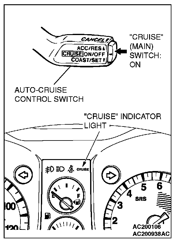 1. Switch "ON" the "CRUISE" (MAIN) switch.