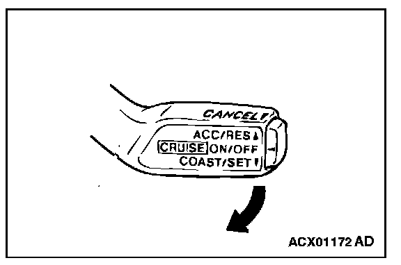 1. The auto-cruise control switch is pulled in the direction of arrow.