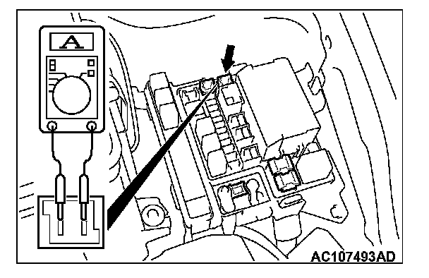 POWER WINDOW OPERATING CURRENT CHECK1. Remove the power window fuse and connect an ammeter as shown in the illustration.