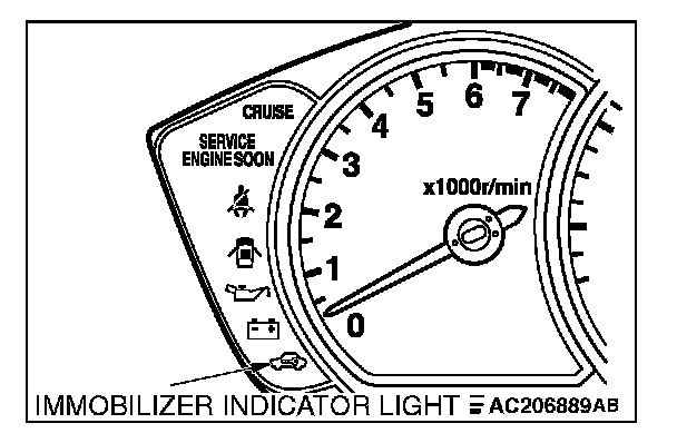 NOTE: When an error occurs while the immobilizer indicator light is flashing, the immobilizer indicator light extinguishes.