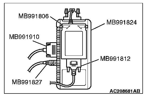 3. Connect special tool MB991827 to special tool MB991824 and the personal computer.