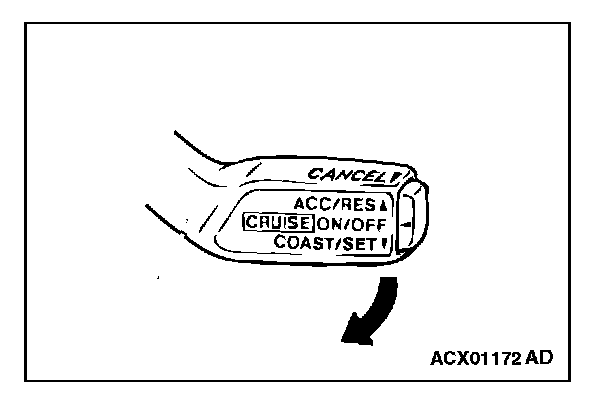 1. The auto-cruise control switch is pulled in the direction of arrow.