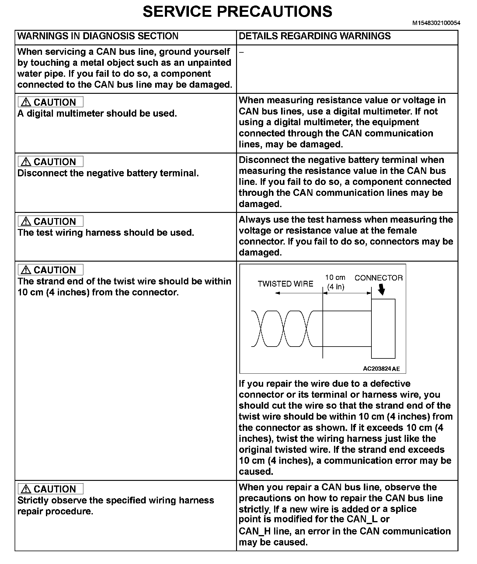 Service Precautions: