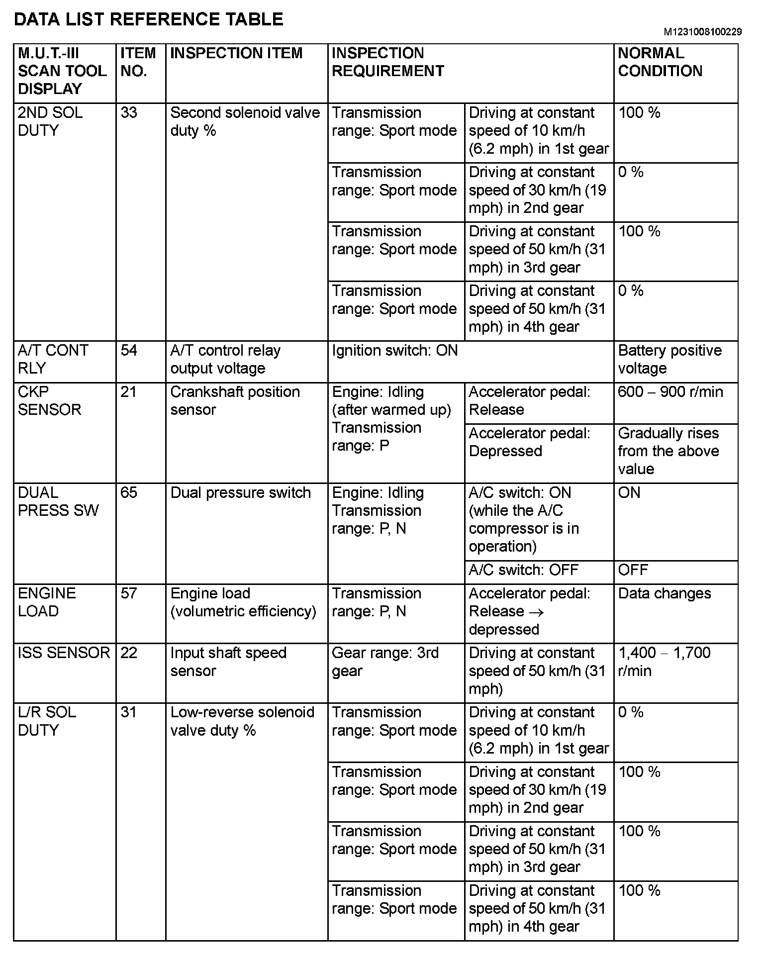 Data List Reference Table (Part 5):