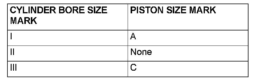Cylinder Bore & Piston Size MarksNOTE: The piston size mark shows on the top of the piston.