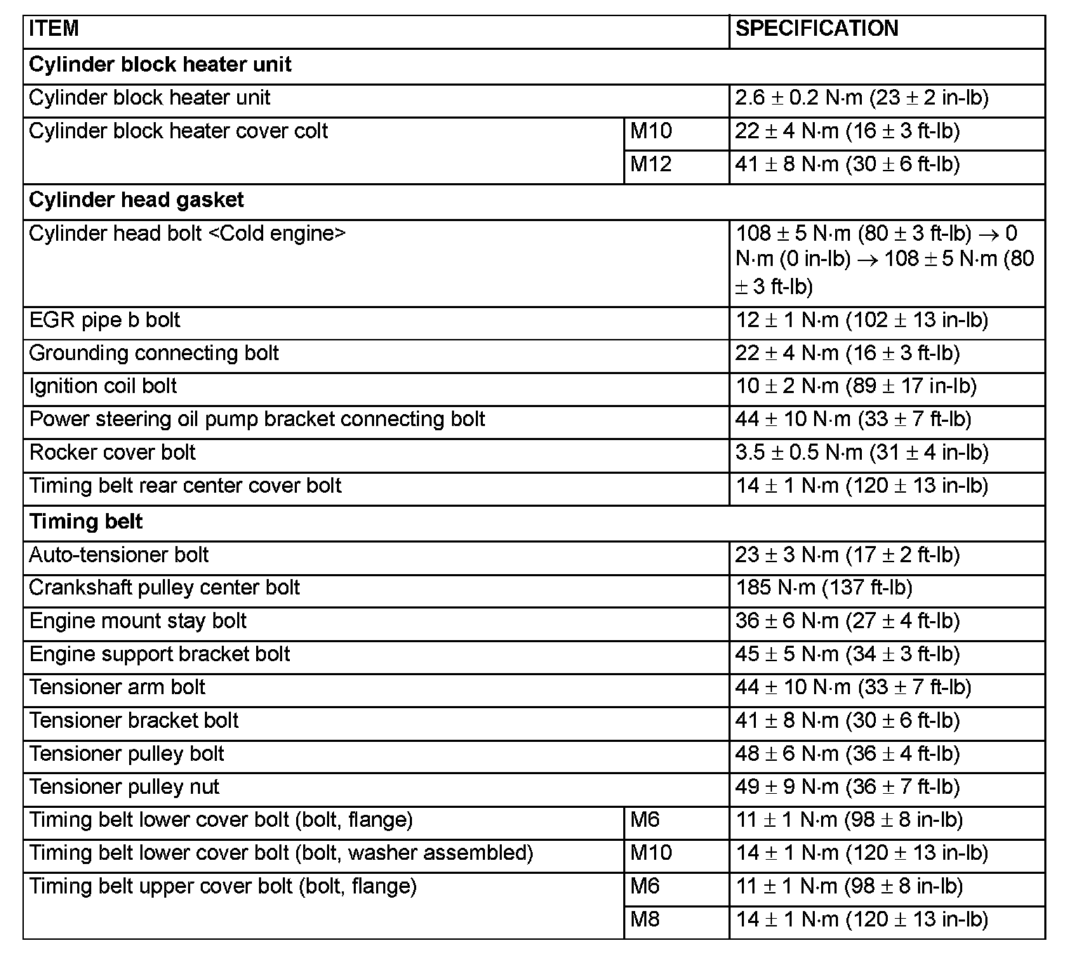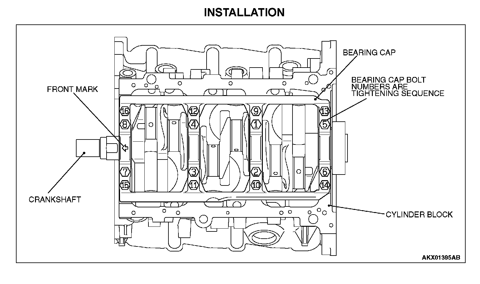 Crankshaft main bearing cap bolts 74 ± 4 Nm (54 ± 3 ft-lb)