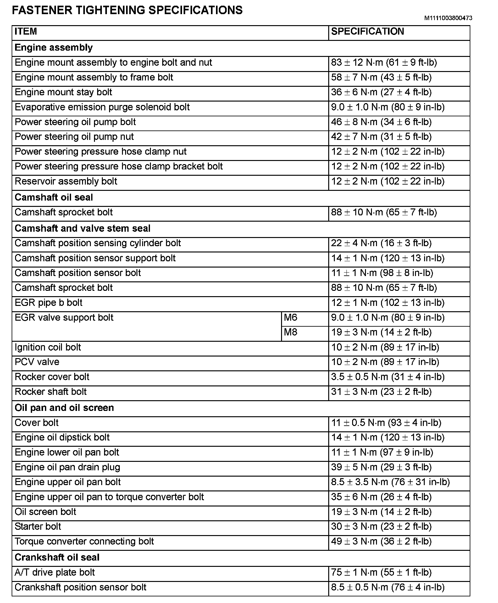 FASTENER TIGHTENING SPECIFICATIONSFASTENER TIGHTENING SPECIFICATIONS (PART 1):