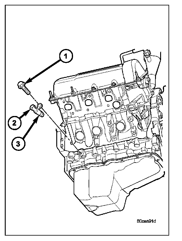 CAUTION: Before tightening sensor mounting bolt (1), be sure sensor is completely flush to cylinder block. If sensor is not flush, damage to sensor mounting tang may result.