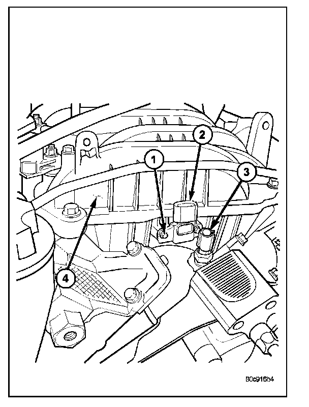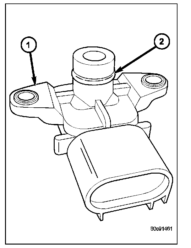 The Manifold Absolute Pressure (MAP) sensor (2) is mounted into the front of the intake manifold. An O-ring is used to seal the sensor to the intake manifold .
