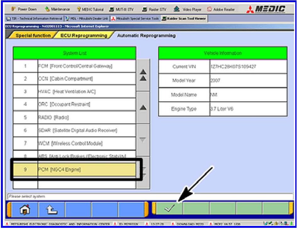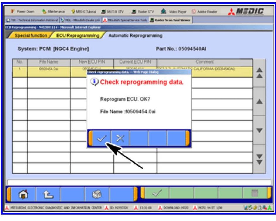 DO NOT SHUT DOWN THE RAIDER STV PROGRAM AT THIS POINT. ECU DAMAGE WILL OCCUR. FOLLOW THE MUT-III SCREEN DISPLAY MESSAGES TO RESTART THE PROGRAMMING PROCESS.