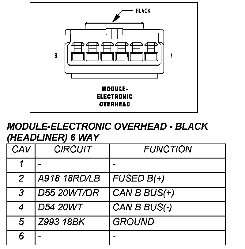 Module-Electronic Overhead - Black (Headliner) 6 Way: