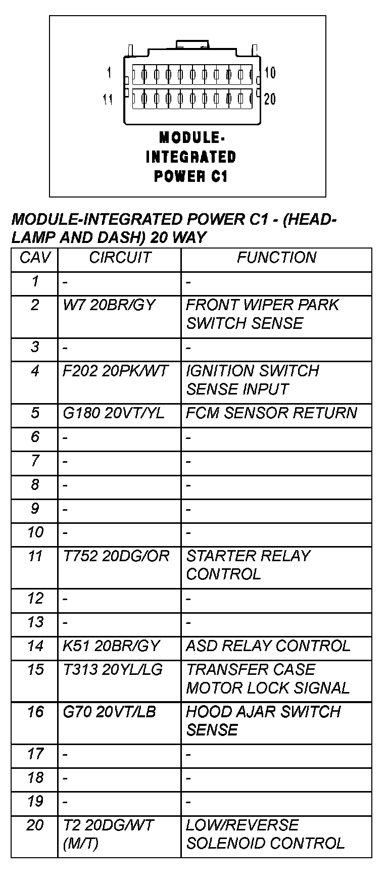 Module-Integrated Power C1 - (Headlamp And Dash) 20 Way: