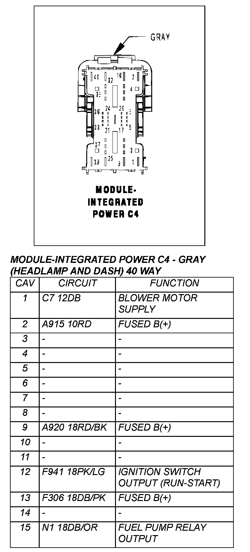 Module-Integrated Power C4 - Gray (Headlamp And Dash) 40 Way (Part 1):