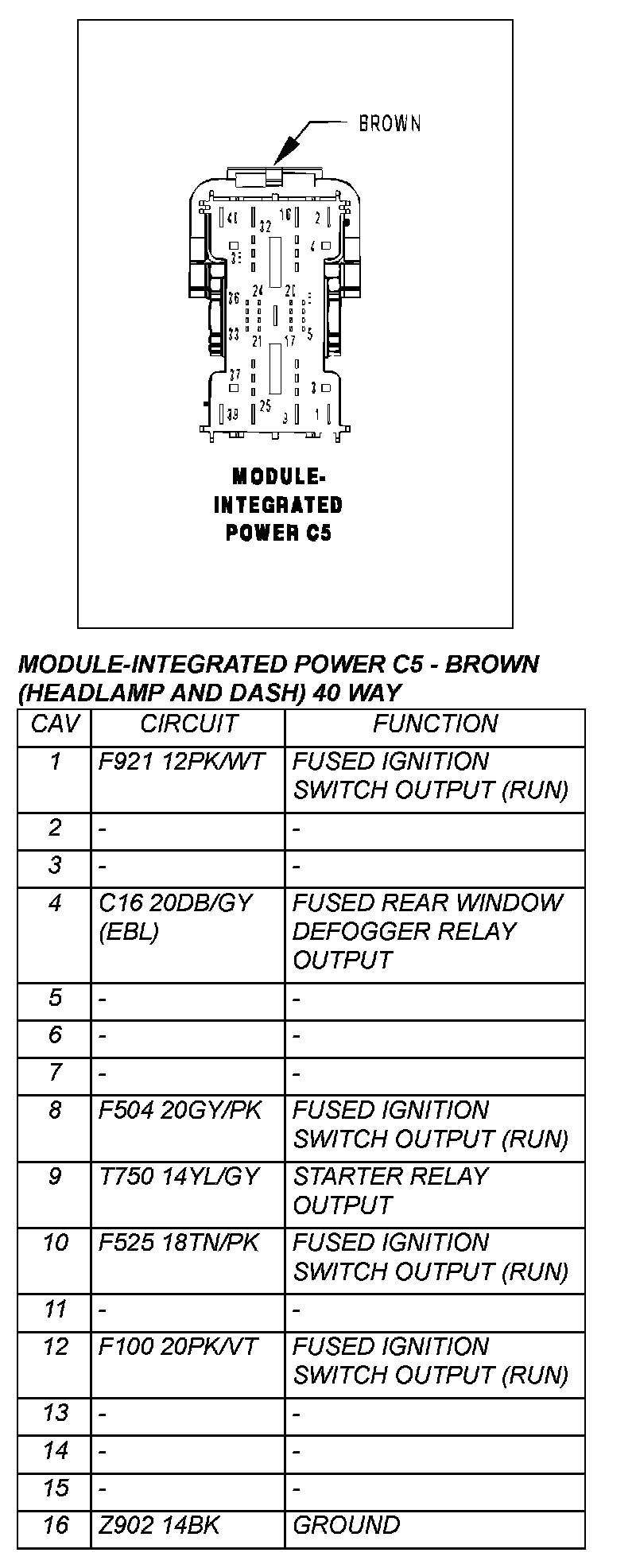 Module-Integrated Power C5 - Brown (Headlamp And Dash) 40 Way (Part 1):