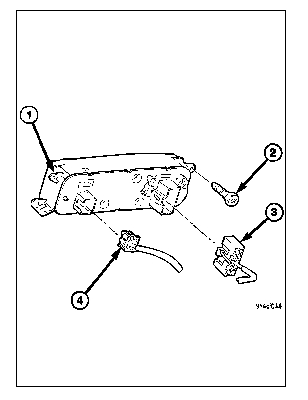 2. Remove the center bezel from the instrument panel and disconnect the wire harness connectors (3 and 4) from the A/C-heater control (1).