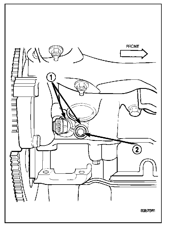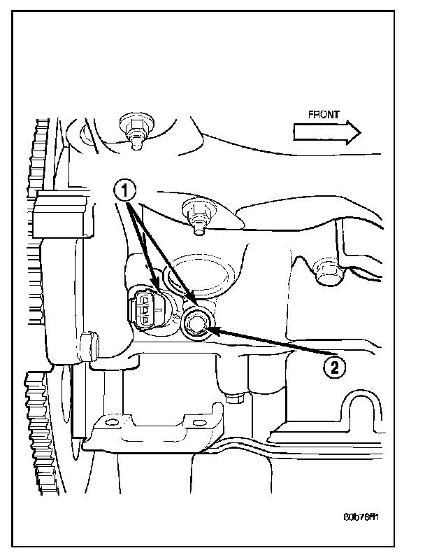 CAUTION: Before tightening sensor mounting bolt (2), be sure sensor is completely flush to cylinder block. If sensor is not flush, damage to sensor mounting tang may result.