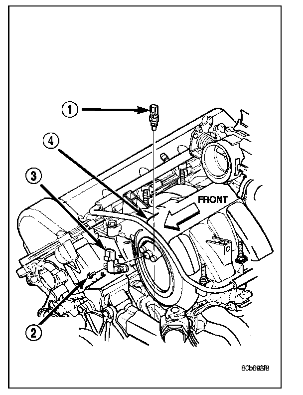 The MAP sensor (3) is located on the front of the intake manifold. An O-ring seals the sensor to the intake manifold.