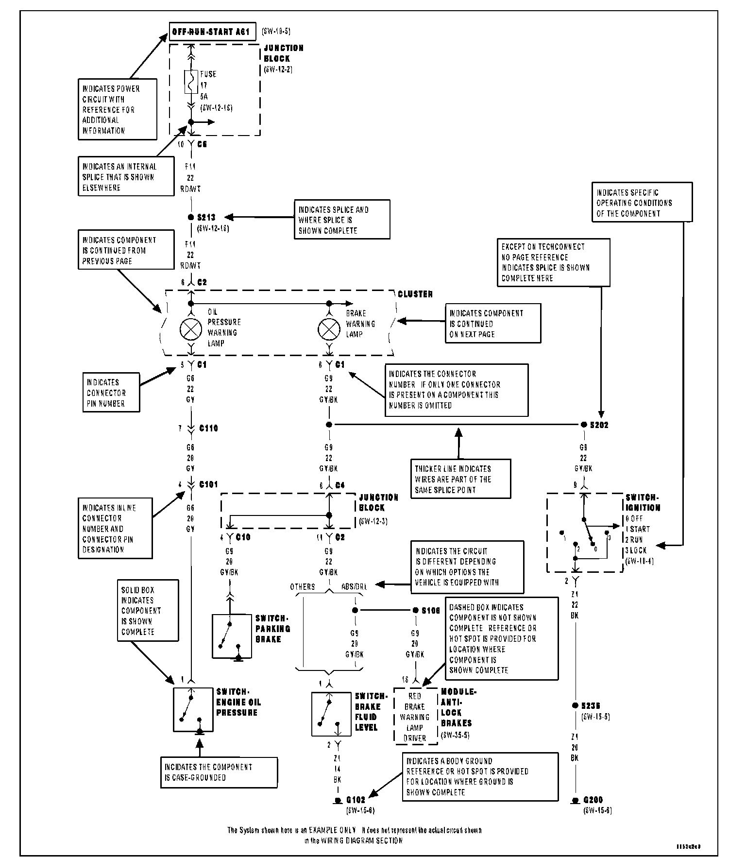 It is important to realize that no attempt is made on the diagrams to represent components and wiring as they appear on the vehicle. For example, a short piece of wire is treated the same as a long one. In addition, switches and other components are shown as simply as possible, with regard to function only